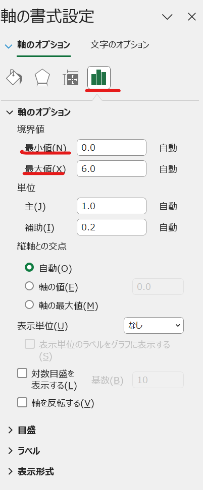 エクセルでは目盛りの位置が通常やらないようなおかしな位置になってしまい、それが修正できないことが多々あります。