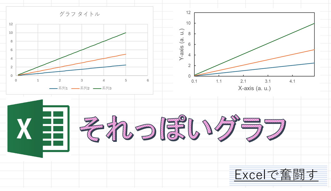 本記事では、エクセルで作ったグラフの見た目を論文で使うために最低限修正する必要のある部分について確認しておきます。一般的な論文で使われているようなスタイルを意識しているつもりですが、私の好みや専門分野(物理・化学)の影響もあると思います。