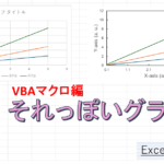 まず、X軸のデータの上0.1のところを選択して、以下のマクロを実行すればグラフが作成できます。1列目にX軸、2列目以降にY軸が並んでいるデータがあれば実行できるので、自分のデータで実行してみてください。