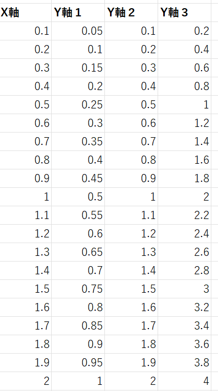 1列目がX軸、2列目以降にY軸が並んでいるパターンです。