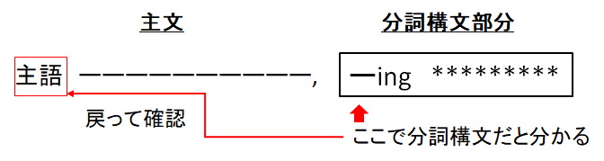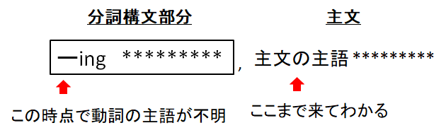 ing形が文頭にくるような場合には、分詞構文であることはすぐにわかりますが、読み手は分詞構文部分が終了するまでその主語が不明です。