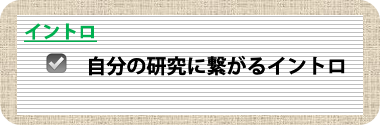 注意しておきたいのは、論文のイントロダクションはあなたの研究分野一般の背景を語る項目ではありません。あなたの論文の内容に即した背景を書く項目です。ここを間違えると良いイントロダクションが書けないので気を付けましょう。
