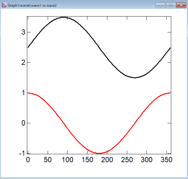 今、wave0にだけオフセットの値として2.5を入れ、二つのデータが重ならないようにしたグラフが下図です。