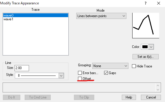 通常はY軸方向にオフセットを付けるので、Y Offsetを使います。Y Multは対数グラフにオフセットを付けるときなどに便利です。
