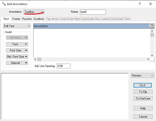 凡例はメニューのGraph、Add annotationから入れられます。Add annotationは通常、グラフ内にテキストボックスを入れる機能ですが、下図の赤線で示した”TextBox”の部分を”Legend”に変えると凡例を入れる機能になります。