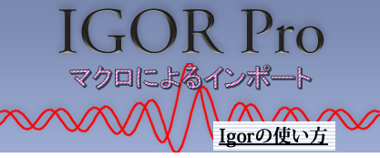 Igorへのデータの読み込みはloadwave関数を用いて行います。読み込むファイルを指定しなければファイルを選択するダイアローグが自動で立ち上がるので、マクロの中でファイル名を指定しないloadwave関数を使ってあげればデータを読み込むマクロになります。