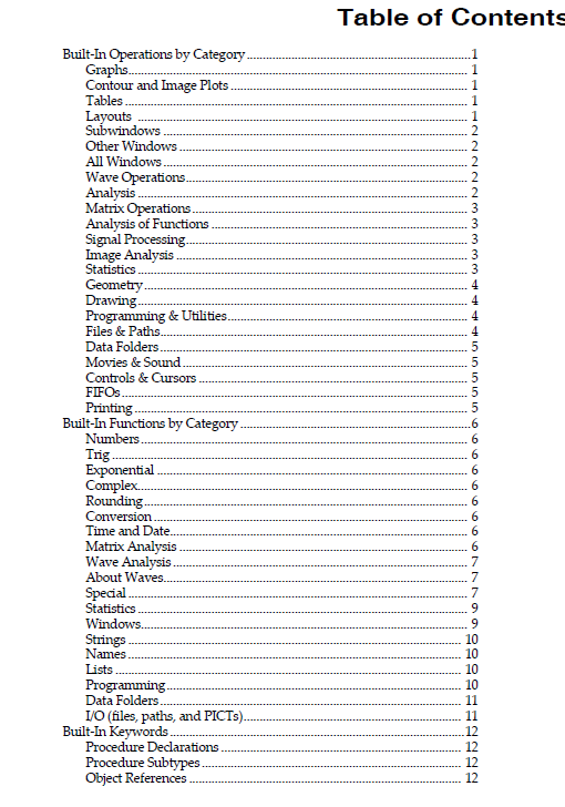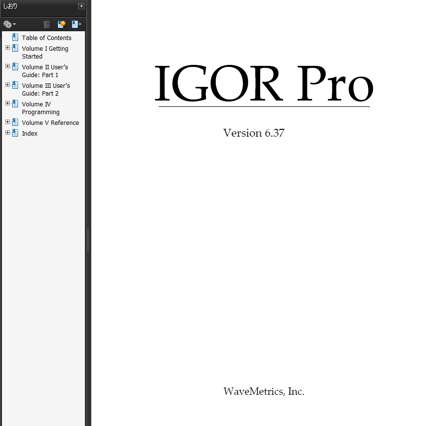 マニュアルの目次を見ると分かりますが、”Getting Started”や”User’s Guide”が付いており、これを順番に勉強すればIgorの使い方を学ぶことができます。