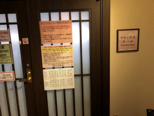 温泉から出た後はリラックスルームがあります。中にはフラットになって寝ることもできる椅子がたくさん並んでいます。椅子にはテレビが設置されているほか、漫画も多数用意されており、長時間くつろぐことができます。ただ、少し漫画のラインナップが古い印象です。