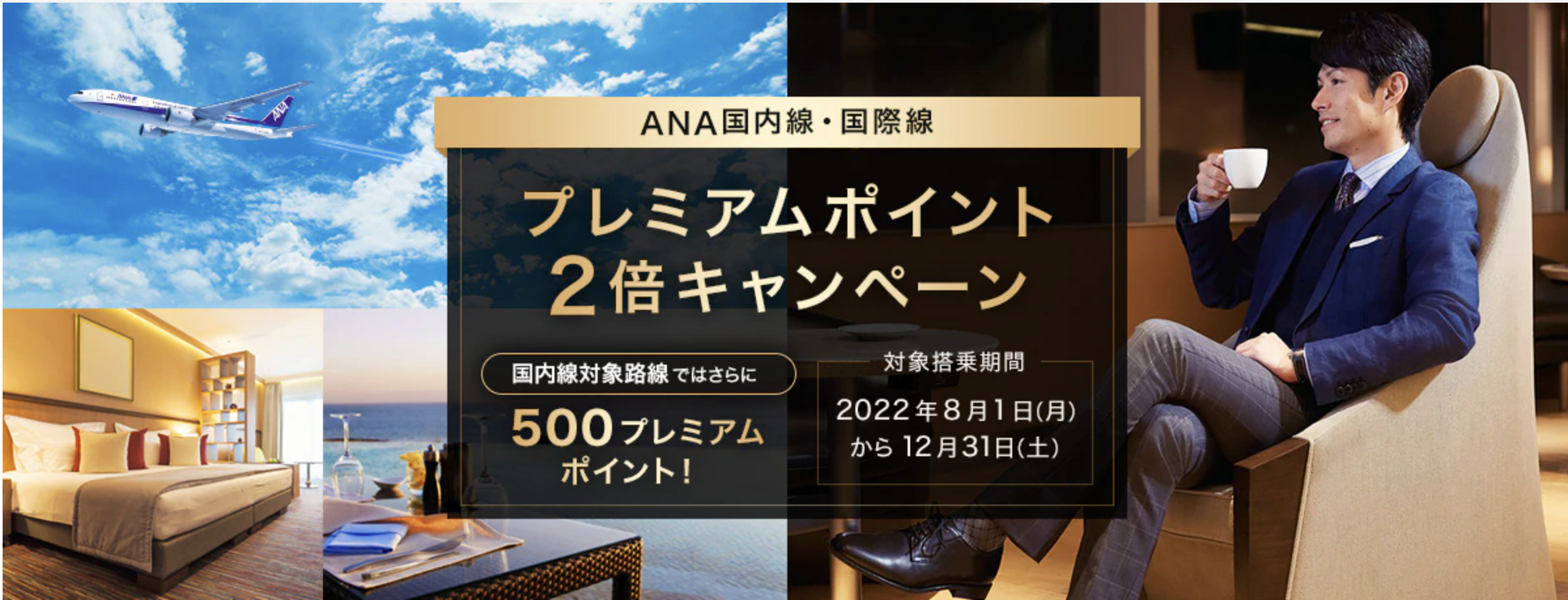 開催期間は8月1日から12月末までと、なんと今年いっぱいプレミアムポイントが倍になります。ANAそんなに苦しいのかと心配になってしまいます。